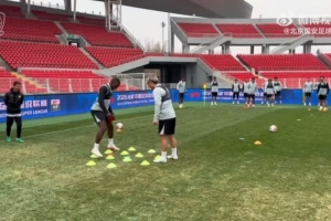 今日训练热身环节—边踢球边下棋