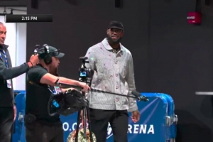 根据NBA官推放出的画面,詹姆斯在当地时间时间下午2点15分就抵达了球馆开始备战,而比赛在当地时间晚7点半才开始。