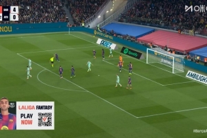 第90分钟,亚马尔中场连续摆脱后送出一脚直塞,费兰·托雷斯单刀球面对乌奈·西蒙推射得手。