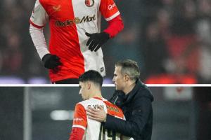 沙奎尔现年19岁,也是踢前锋。他曾在曼城青训踢过两年球,2017年跟随父亲的步伐加盟费耶诺德,2022年与这家荷兰俱乐部签订生涯第一份职业合同。