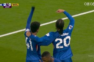 英超第11轮,切尔西3-0狼队,两位巴西国脚佩德罗与埃斯特旺庆祝