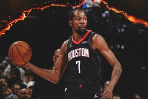 赛后火箭官方发布赢球海报,本场迎来复出的杜兰特登上封面!