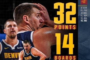 赛后,掘金官方发布约基奇数据海报,并写道:“这些都是他在32分钟里做到的😮”