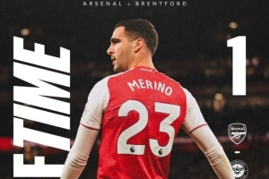 体育资讯12月4日讯 阿森纳在本轮英超对阵布伦特福德,梅里诺为球队首开记录,上半场比分1-0。