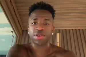 维尼修斯社媒晒出视频,他赤裸上身一边骑动感单车一边跳舞,展现自己的舞蹈天赋。