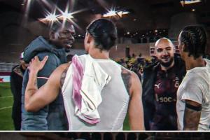 法甲官方晒出照片,摩纳哥中场博格巴与加拉塔萨雷前锋萨内赛后寒暄。博格巴和萨内曾分别效力曼联和曼城,在曼彻斯特对决多年。后来他们分别去了尤文和拜仁,现在则是在法国和土耳其踢球。