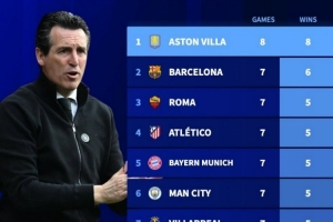 体育资讯12月12日讯 在本轮欧联杯,维拉2-1击败巴塞尔,各项赛事豪取8连胜。德转盘点了五大联赛球队自11月6日以来各项赛事胜场数榜,具体如下: