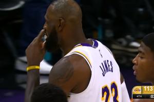 GIF-詹姆斯三分出手!裁判吹了太阳犯规!太阳挑战!