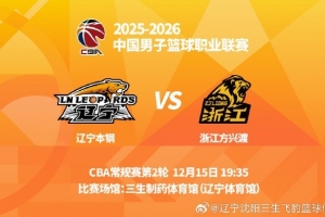 12月15日晚,辽宁男篮将在辽宁体育馆迎来2025-2026赛季CBA首个主场比赛,对手是上赛季冠军浙江方兴渡男篮。