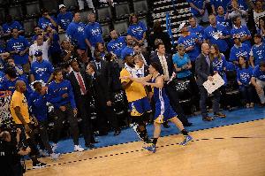 2016年西决G6,雷霆3比2手握赛点,但克莱那一场天神下凡轰进11个三分球,把系列赛带回了湾区。