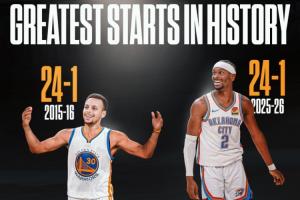作为对比,当年15-16年73胜的勇士,第3败出现在第39场,36胜3负。