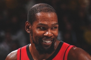 赛后火箭官方晒出本场赢球海报,封面人物是杜兰特。