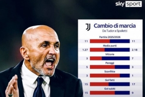 体育资讯12月22日讯 意大利天空体育晒出海报,对比了斯帕莱蒂和图多尔的数据。