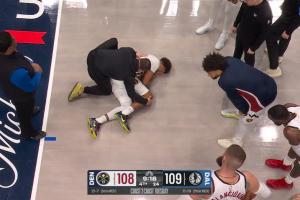 相关新闻>>>重伤!卡梅隆·约翰逊落地膝盖外掰痛苦倒地!一瘸一拐提前离场