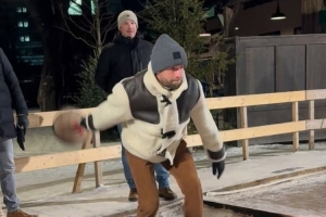 穆勒在慕尼黑户外玩巴伐利亚传统冰壶,他在社交媒体上晒出视频,配文:“慕尼黑的寒冷天气简直是在邀请大家玩冰壶😁👍🏼❄️你们尝试过这项巴伐利亚运动吗?”