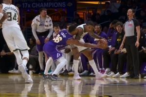 GIF-斯玛特掏球小波特,裁判吹雄鹿球权;湖人挑战又成功了