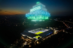 伯明翰将承办赛事中的四场比赛,比赛地点为维拉公园球场,比赛日期分别为6月11日、15日、20日和27日。在伯明翰,当地主办城市的官方标志于周三晚间首次亮相,伯明翰图书馆也被点亮灯光以示庆祝。