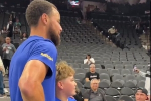 GIF-独腿小球迷称库里是自己最喜欢的球员 库里暖心合影+给球迷的假肢签名