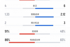 预期进球——1.33比2.12