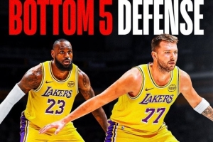 美媒ClutchPoints晒出湖人本赛季防守数据,本赛季湖人的防守效率117(百回合失分),排名NBA第25位,但他们总战绩28胜17负。