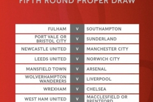 体育资讯2月17日讯 足总杯1/8决赛对阵结果出炉,曼城对阵纽卡,利物浦对阵狼队,阿森纳将对阵曼斯菲尔德。