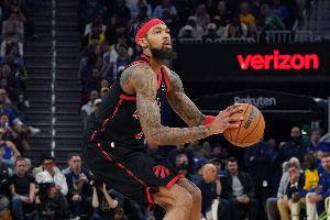 体育资讯2月20日讯 猛龙和公牛的比赛,半场休息,猛龙53-45领先公牛。