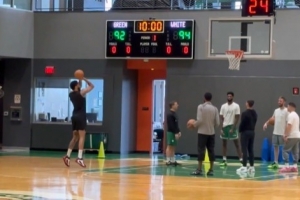 体育资讯11月15日讯 据绿军随队记者Daniel Donabedian报道,绿军球星塔图姆今日回到了凯尔特人训练馆,并进行了简单的投篮训练。