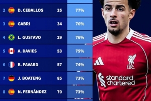 体育资讯3月18日讯 德国转会市场盘点了1992-93赛季欧冠改制以来,至少出战25场比赛的球员胜率情况,利物浦的柯蒂斯·琼斯以80%的胜率居首。
