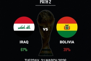 体育资讯3月29日讯 世预赛洲际附加赛,伊拉克将和玻利维亚争夺一个世界杯参赛名额。本场比赛之前,伊拉克被认为有着61%的晋级概率。
