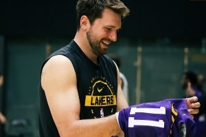 今天湖人球员们都没有穿着各自号码的训练服,而是都穿上了队友的号码。东契奇穿上了海斯的11号,詹姆斯穿了德鲁·蒂米的17号,肯纳德穿了东契奇的77号,布朗尼穿的则是拉拉维亚的12号等等。