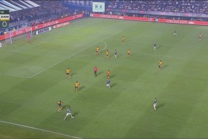 下一篇: B费拿球到禁区右路后脚跟回做,特林康停球后推射破门!